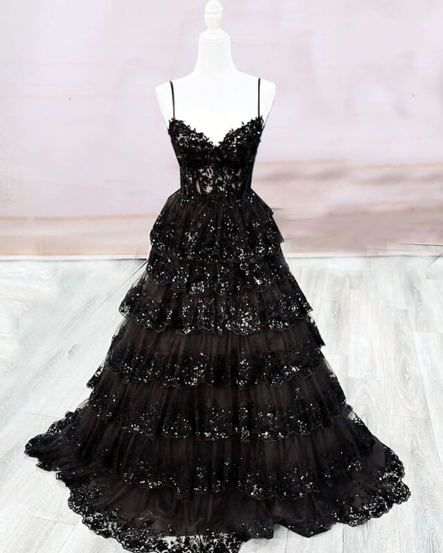 Source : www.lafemmefashion.comBlack Tiered Lace Prom Dress 2024 – alinanova